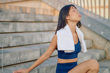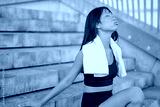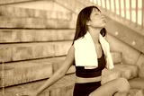 Asian athlete enjoying a peaceful moment while resting outdoors after an invigorating workout, embracing wellness and recovery in the city