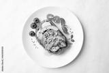 Top view of Avocado toast with banana, sunflower seeds, pumpkin seeds, sesame seeds, blueberries, tomatoes and honey, Healthy eating