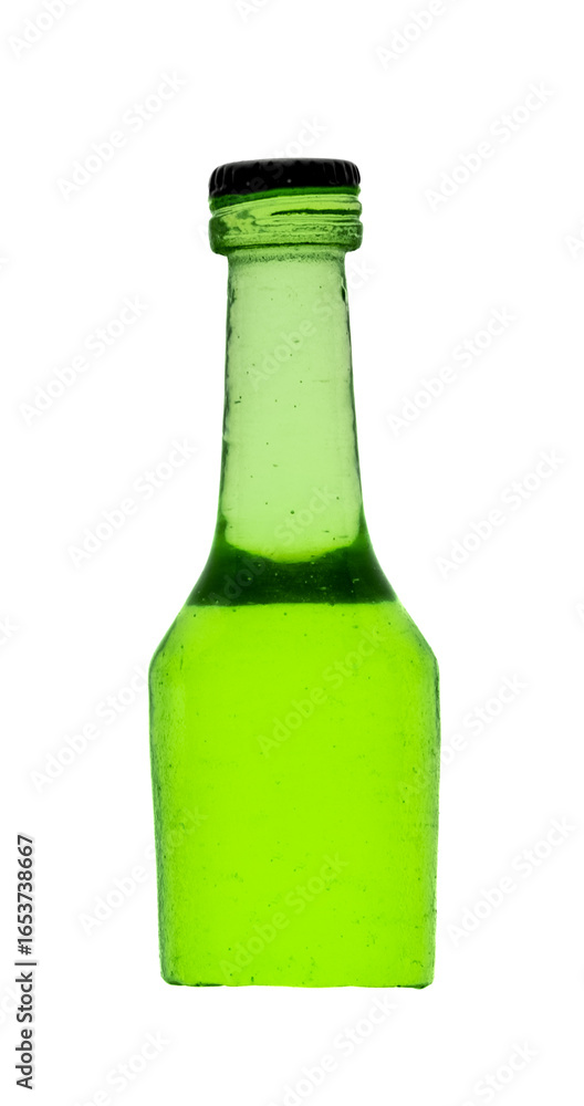 Colorful glass bottles in various shapes displayed against a transparent background for creative design purposes