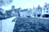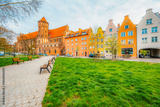 Gdansk with Motlawa river in Poland. Old town colourful house with saint Marys church i main square.