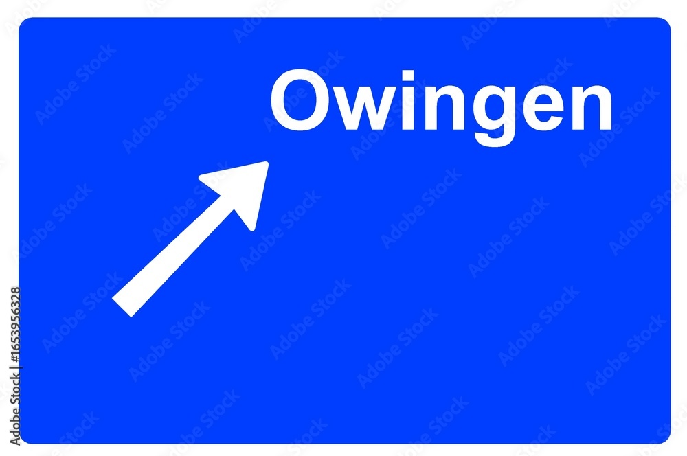Illustration eines Autobahn-Ausfahrtschildes mit der Beschriftung "Owingen"
