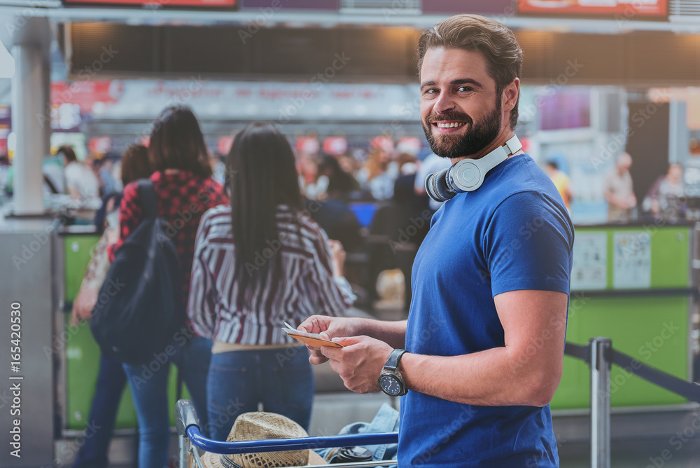 Merry smiling man in terminal