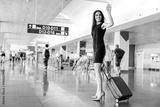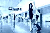 Joyful attractive lady is standing with luggage