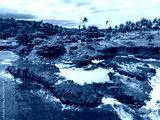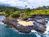 Sao Tome and Principe - Boca do Inferno Aerial View. Dramatic Coastal Cliffs and Palm-Lined Shoreline With Crashing Ocean Waves.