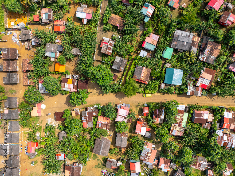Sao Tome and Principe - Boca do Inferno Aerial View. Traditional Village With Colonial-Style Houses Surrounded by Tropical Nature and Ocean.