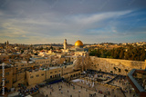 Wailing wall and Al Aqsa in Jerusalem, sunset view