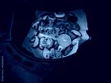 Fresh salmon fillet with garlic and lemon slices,shiitake mushroom tomatoes prepare to be cooked in the air fryer.healthy food concept.