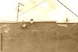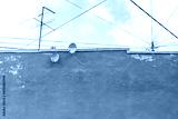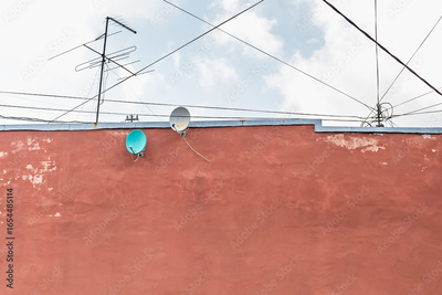 Rooftop antennas and terracotta firewall wall in Saint Petersburg.