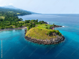 Sao Tome and Principe - Lagoa Azul Aerial View. Stunning Turquoise Waters and Rocky Coastline in a Tropical Island Paradise.