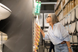 Senior woman exploring home improvement products in a hardware store during the afternoon