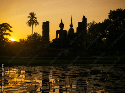 Sukhothai Historical Park World heritage Thailand Silhouette Sunset scene
