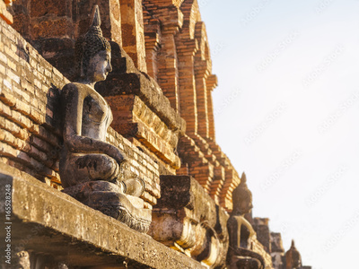Buddha statue on temple wall in Sukhothai Historical Park World heritage Thailand