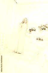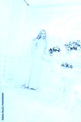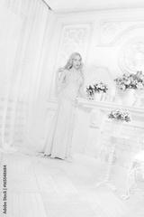 Fashion Beauty Portrait. Beautiful Blonde Girl, Model Woman wearing Long evening prom Chiffon dress. Studio retouched shot