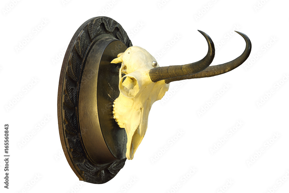 chamois hunting trophy mounted on wooden plate