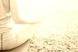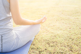 Close up hands woman do yoga,Asian girl doing yoga in garden with morning light