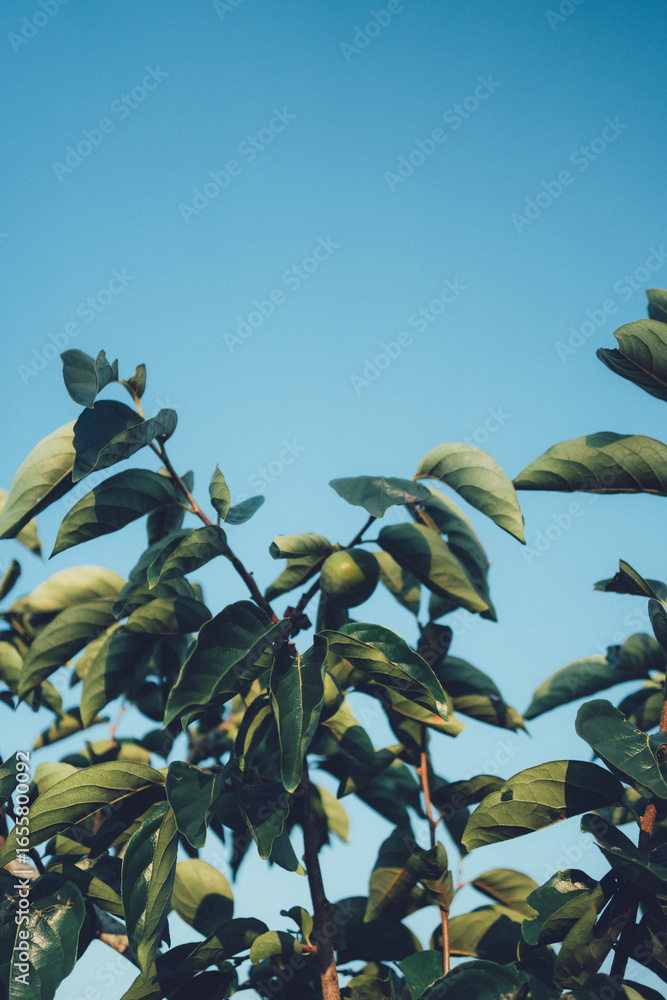 実が青い柿の木