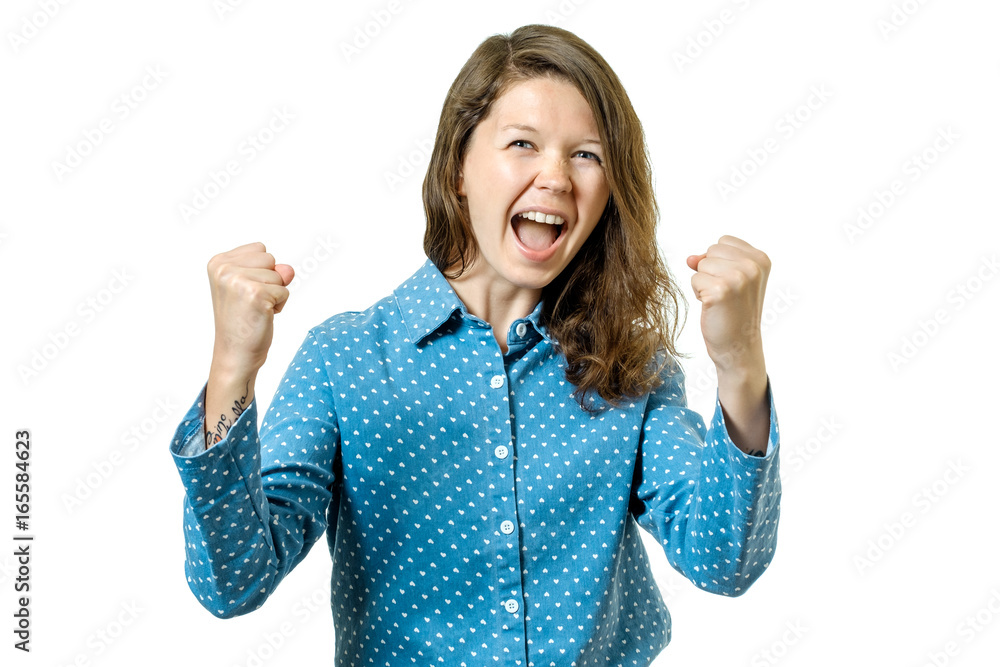 Successful woman with arms up celebrating