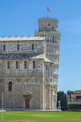 Closeup view of the Leaning Tower of Pisa. Italy. Vertically.
