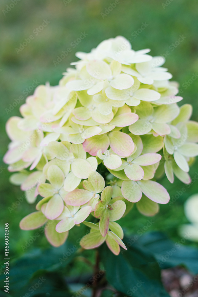 Hydrangea paniculata Graffiti white green flowers close up