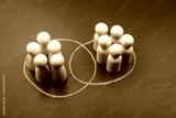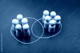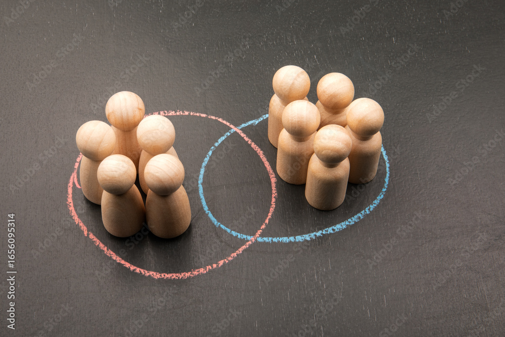Group comparison and segmentation concept with wooden figures and chalk circles