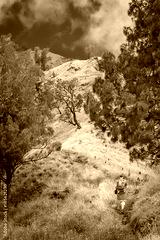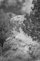 Trekker walking up the path to the summit of Gunung Rinjani