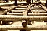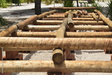 Canteiro de hortaliças tradicional do sertão nordestino sendo construída com toras de madeiras, horta ecológica em construção