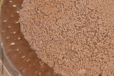 Tapioca regional servida em bandeja de metal, comida regional nordestina pronta, assada em forno de lenha rústico com fécula de mandioca e coco ralado vista de perto