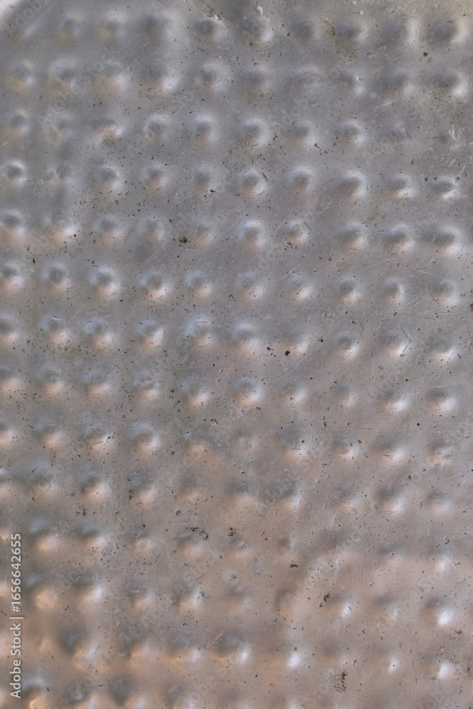 Fundo de alumínio brilhoso reflexivo com bolinhas alinhadas, padrão metálico com bolas e círculos, papel de parede com chapa de bandeja de metal