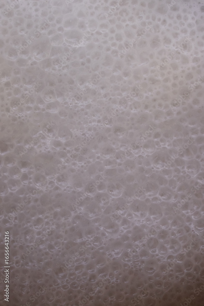 Fundo com borbulhas de leite liquido visto de perto, leite retirado da busca de coco seco, textura de bolhas brancas de leite fresco