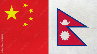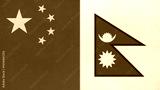 The diagonal and stitched-aligned combined China and Nepal flags. Concept of Strategic negotiation, national relationship, Conflict, and War.