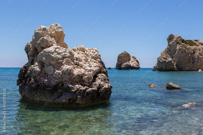 One of the most beautiful coastlines in Cyprus. Petra tou Romiou also called Aphrodite's Rock, Cyprus