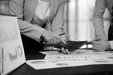 Financial Advisor team working analysis on business report for estimating the capital, planning corporate finance and financial management.