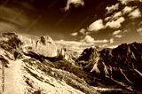 The mighty Vajolet Towers and Four Wheel Drive in the Catinaccio (Rosengarten) in the Dolomites of Italy