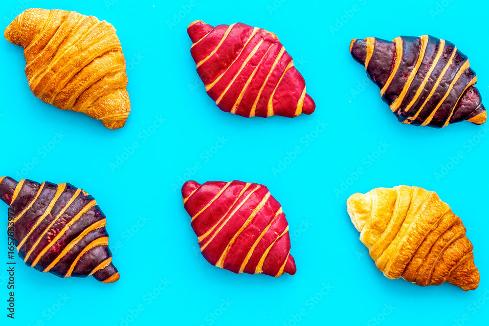 Croissants pattern - set of snacks on stone background.