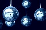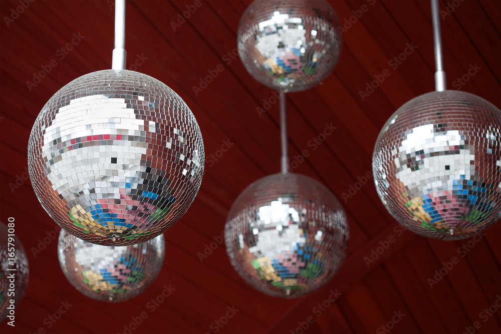 Mirror balls disco party abstract dark red background. shallow depth field