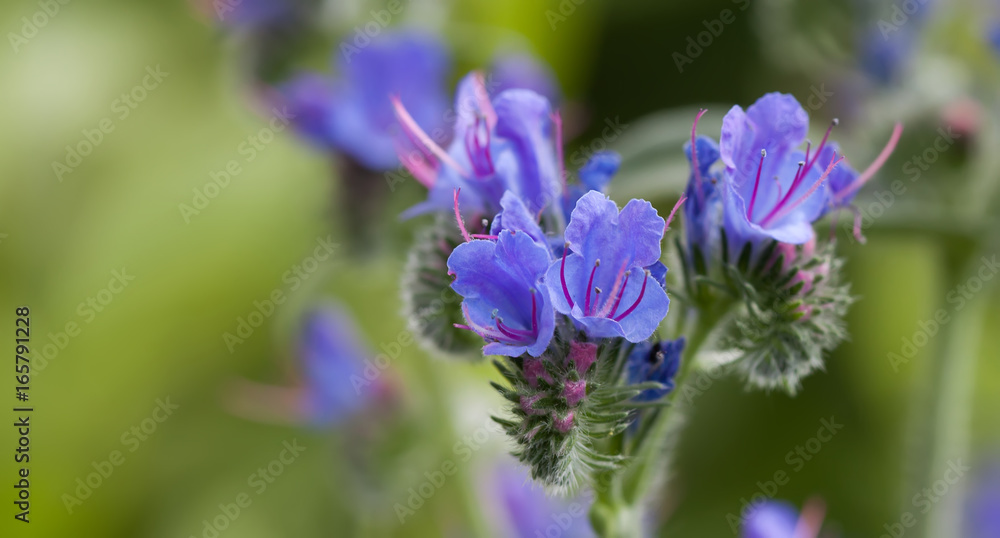 Beautiful wild flowers landscape. Poisonous plant Echium vulgare viper's bugloss and blueweed flowering plant in the borage family Boraginaceae