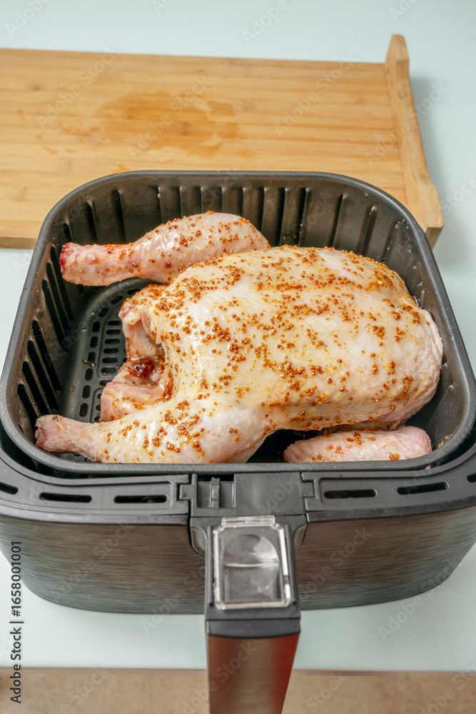 Freshly seasoned raw chicken wings with BBQ sauce and honey, ready to air fry for the perfect glaze