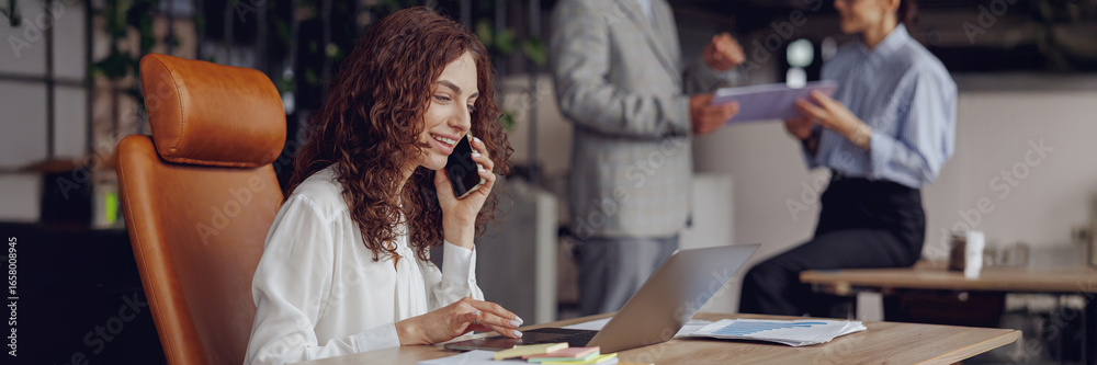 A diverse group of skilled professionals is collaborating effectively in a modern, welldesigned office setting
