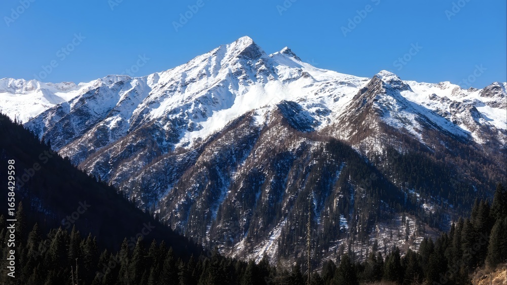 Snowcapped Mountain Summit with Glacier Against Blue Sky - Eternal Alpine Majesty