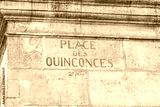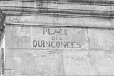 Place des Quinconces sign on the Fountain of the squre in Bordeaux, France