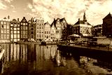 Exterior view of buildings at Damrak street in the old town part of Amsterdam