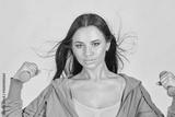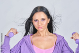 Young caucasian female with dumbbells in activewear exercising with confidence and determination.