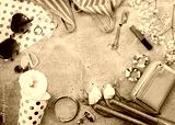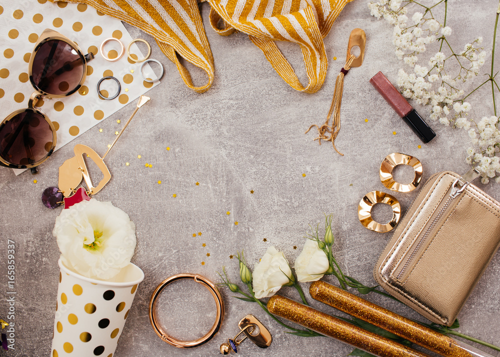Woman accessories from above copy space for text.