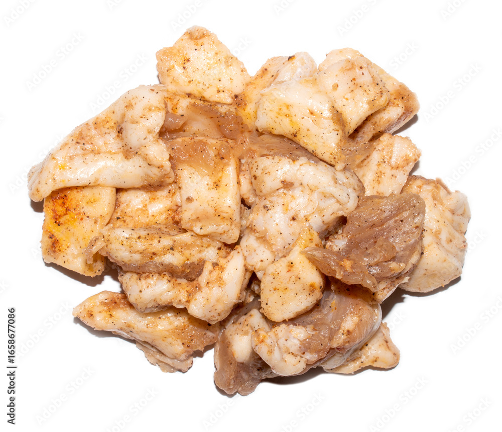 Salted bacon with pepper and garlic.Lard marinated with spices and garlic.Homemade bacon slices.Fat background.