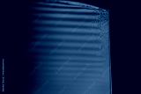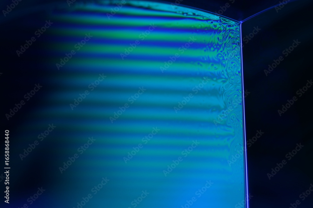 Blue ink macro abstraction, movement of paint spots in circles on the surface of a water film