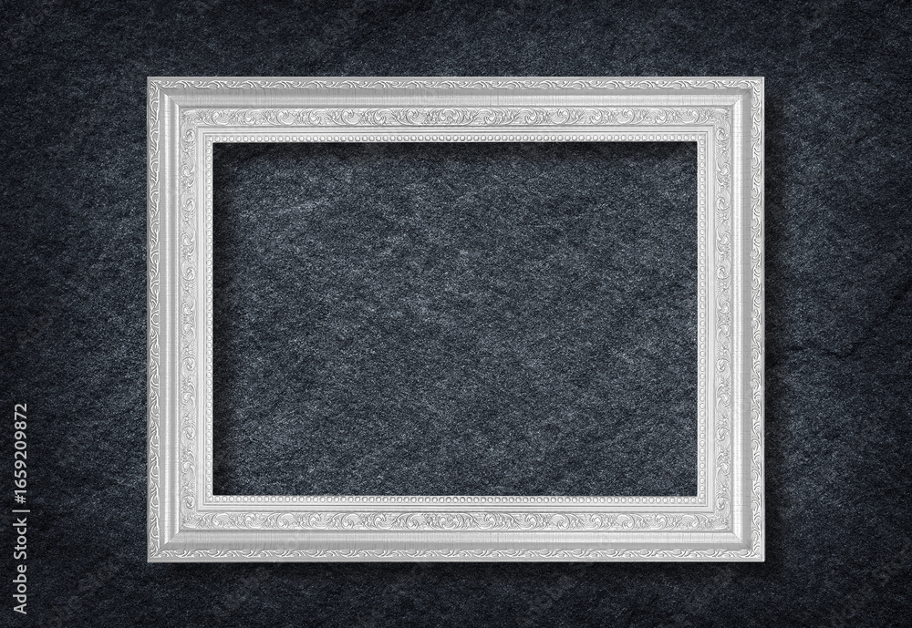 Silver frame on black slate stone background
