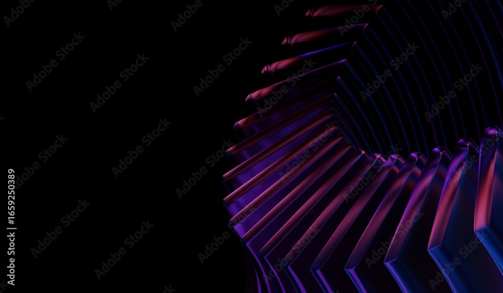 Blue purple caustic effect with neon light holographic gradient, black 3D background, and glass chromatic cube block shapes render. Abstract crystal pattern. 3D illustration