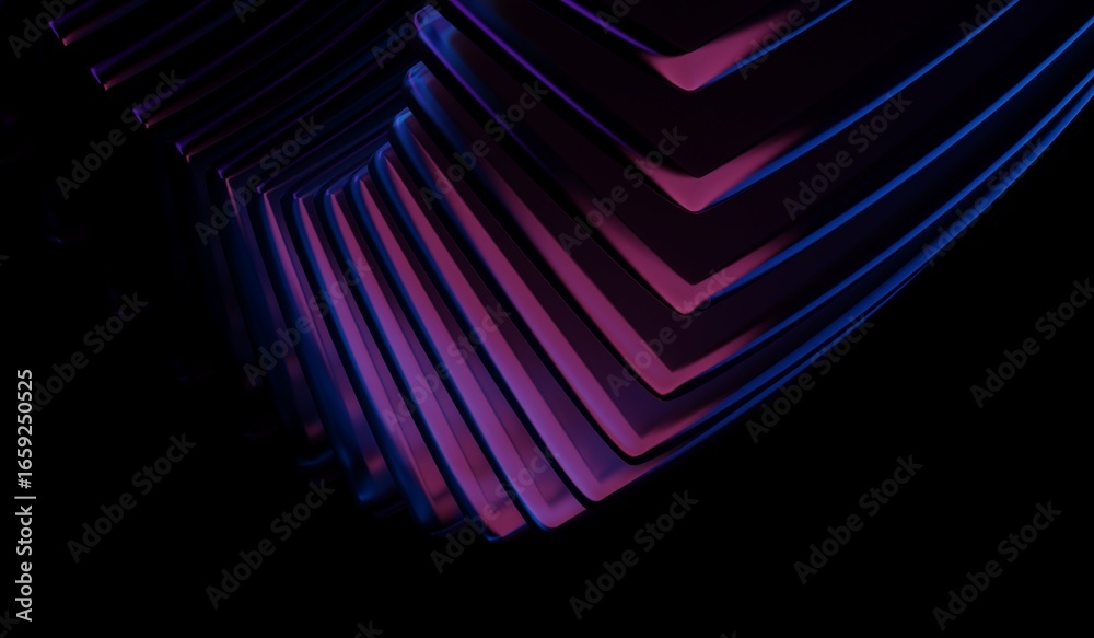 Blue purple caustic effect with neon light holographic gradient, black 3D background, and glass chromatic cube block shapes render. Abstract crystal pattern. 3D illustration