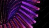 Glass chromatic cube block shapes render with neon light holographic gradient and blue purple caustic effect on black 3D background. Abstract crystal pattern. 3D illustration