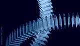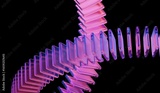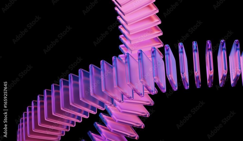 Black 3D background featuring glass chromatic cube block shapes render with abstract crystal pattern, neon light holographic gradient, and blue purple caustic effect. 3D illustration